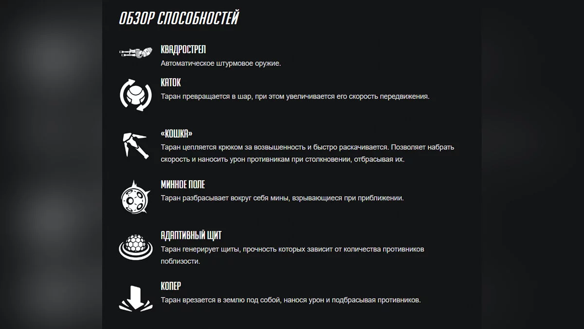 - «Копер»: Таран падает вниз, нанося врагам большой урон