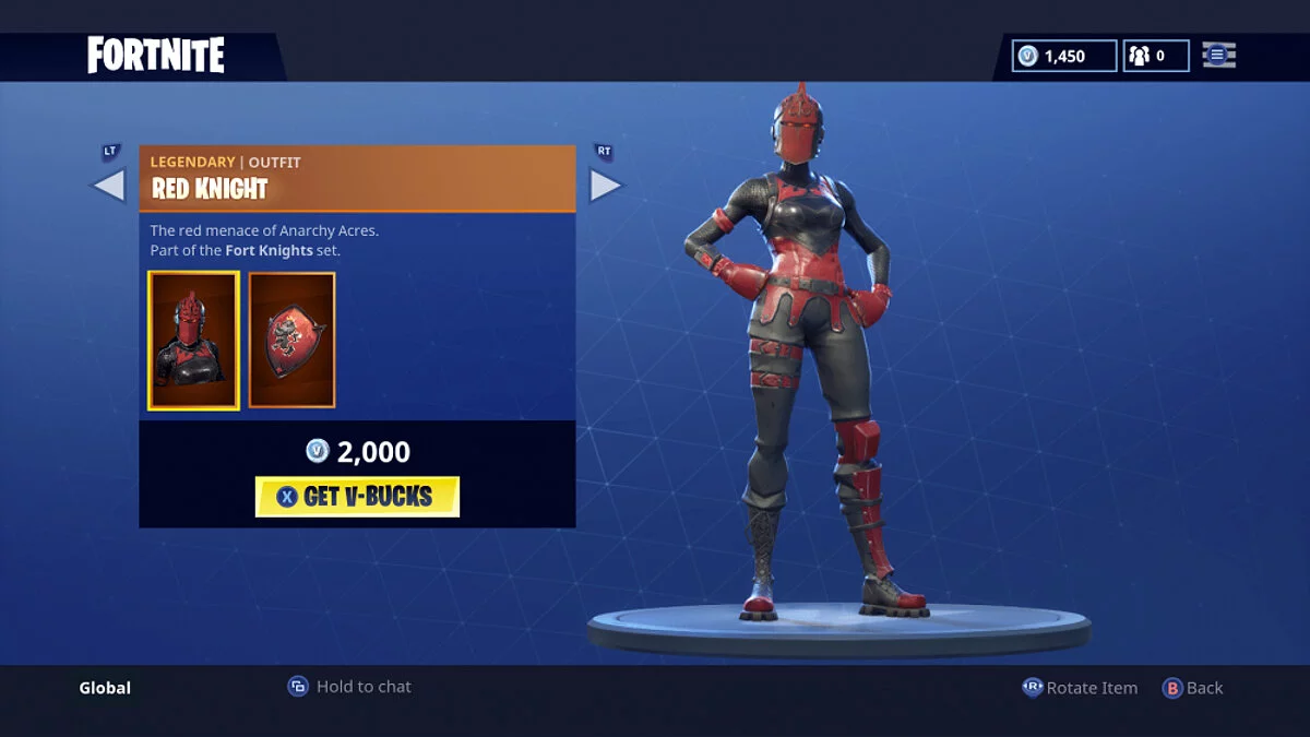 Данный скин был очень большой редкостью в течение нескольких месяцев из-за столь долгого отсутствия. Некоторые фанаты даже выразили некоторую досаду в Twitter из-за возвращения костюма, ведь теперь его обладателя можно будет увидеть почти в каждом матче. Новую версию Красного рыцаря можно купить за 2000 V-баксов. Также для покупки доступна особая кирка за 800 единиц.
