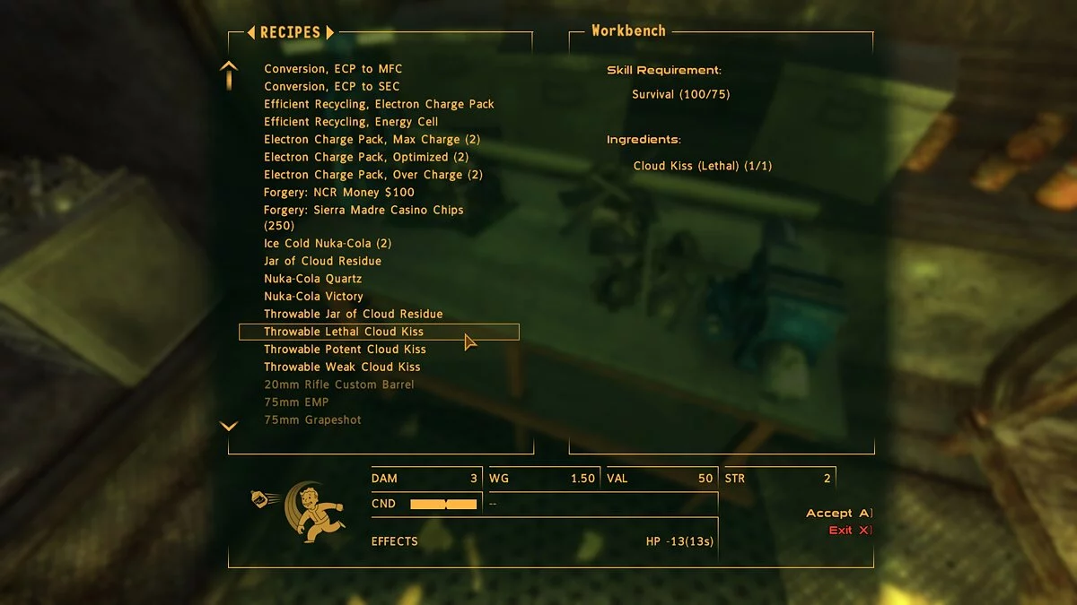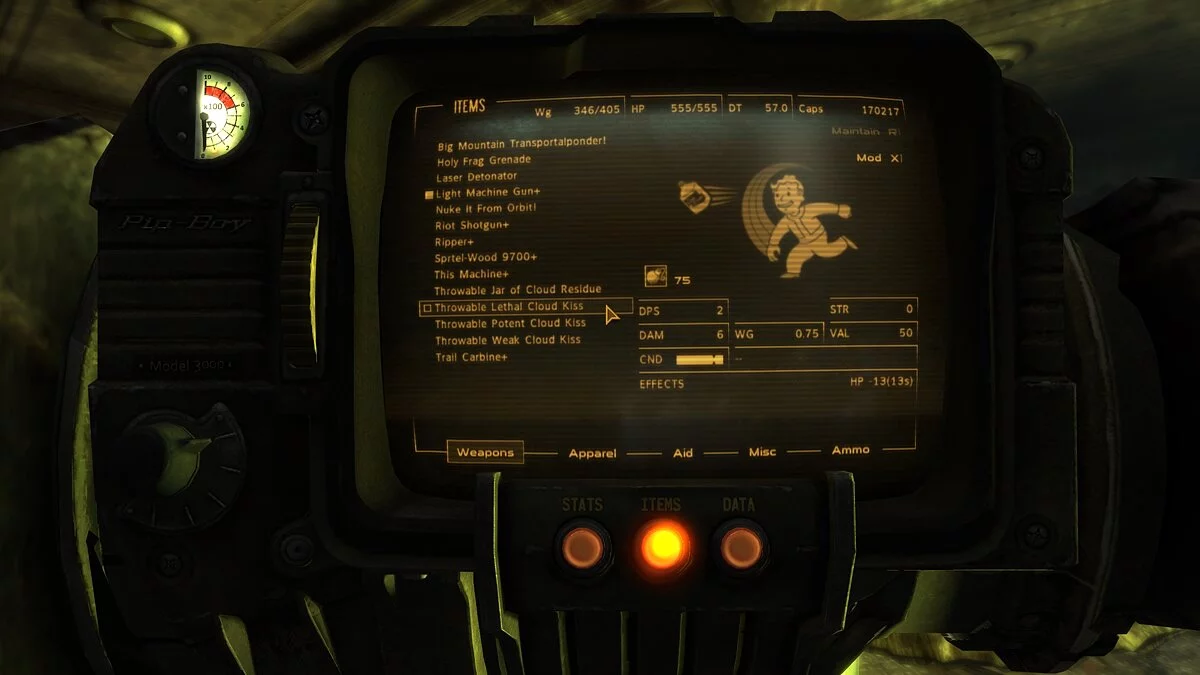 Моддер под ником Hopper31 выпустил для Fallout: New Vegas новый мод, который позволяет создавать смертоносные гранаты с токсичным газом из дополнения Dead Money.