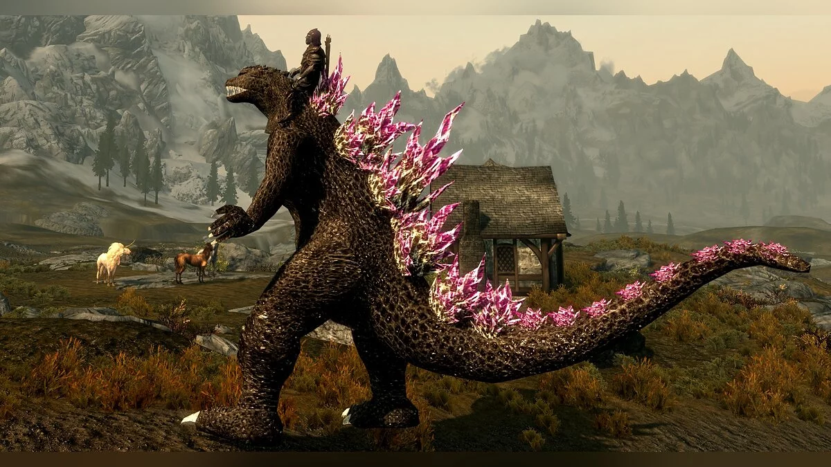 Теперь в Skyrim можно кататься на Годзилле и летать на Родане