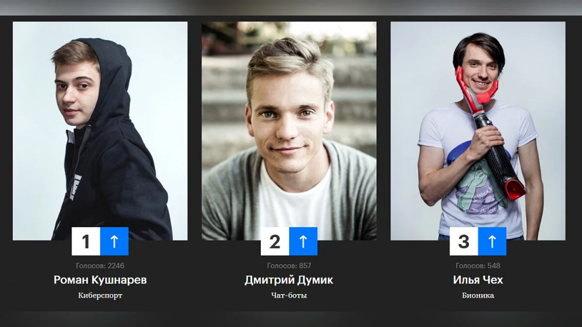 Сейчас же издание решило провести голосование за лучшего из двадцатки. Неудивительно, но пока лидирует именно киберспортсмен. На момент написания новости игрок Virtus.pro лидирует с отрывом в 1392 голоса, обогнав разработчика чат-ботов для Facebook. Также в голосовании участвуют разработчик бионических протезов и чемпион UFC в легком весе Хабиб Нурмагомедов.