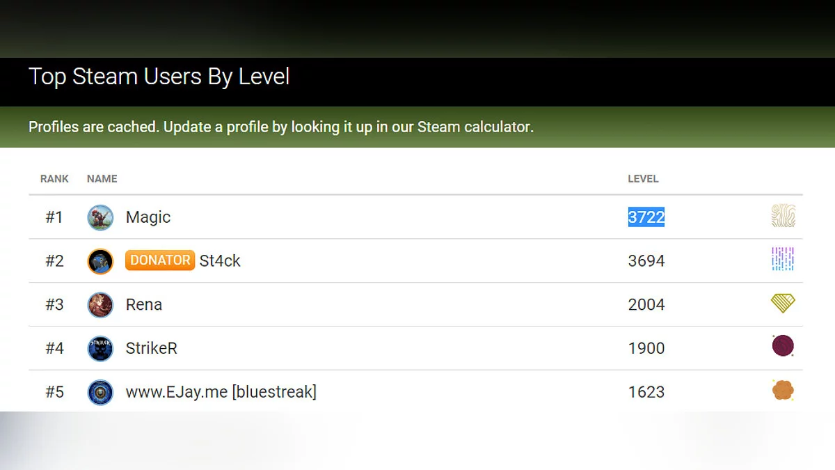 Около двух лет геймер с ником St4ck имел самый высокий уровень в Steam, но недавно его выбил с первого места ранее неизвестный российский геймер со странным ником Magic_Piska (сейчас ник изменен на просто Magic).