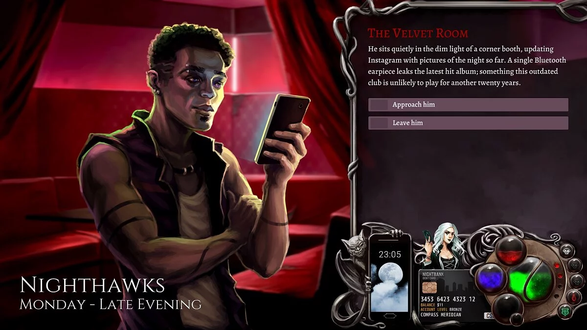В Nighthawks игроки выступят в роли новообращенного вампира, который должен открыть собственный ночной клуб, узнать о своей сущности и продвинуться в вверх по иерархии.