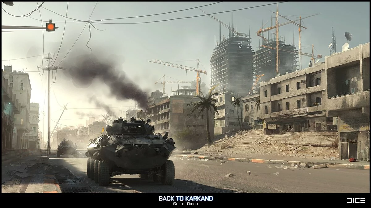 DICE опубликовала два концепт арта Battlefield 3, на которых запечатлены локации Gulf of Oman и Sharqi Peninsula из сборника карт Back to Karkland.