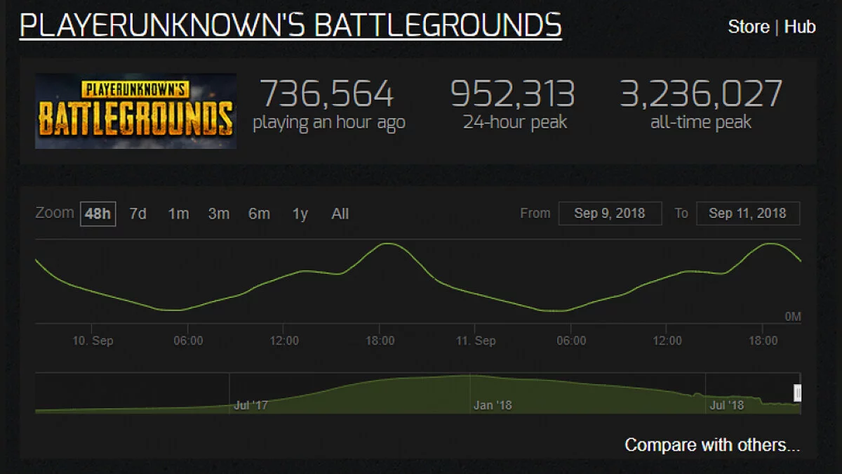 Вчера стало известно, что PUBG стала первой игрой, которая удерживала один миллион игроков в Steam на протяжении года. Сегодня рекорд подошел к концу — «королевская битва» внезапно стала терять популярность.