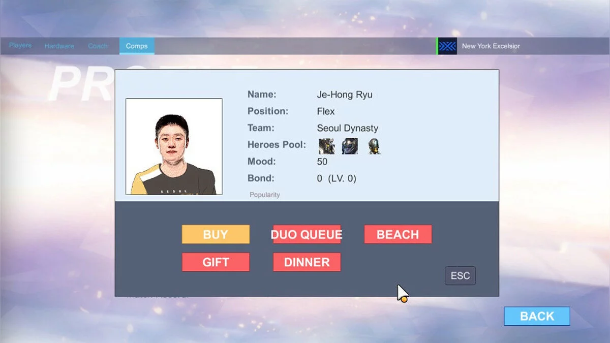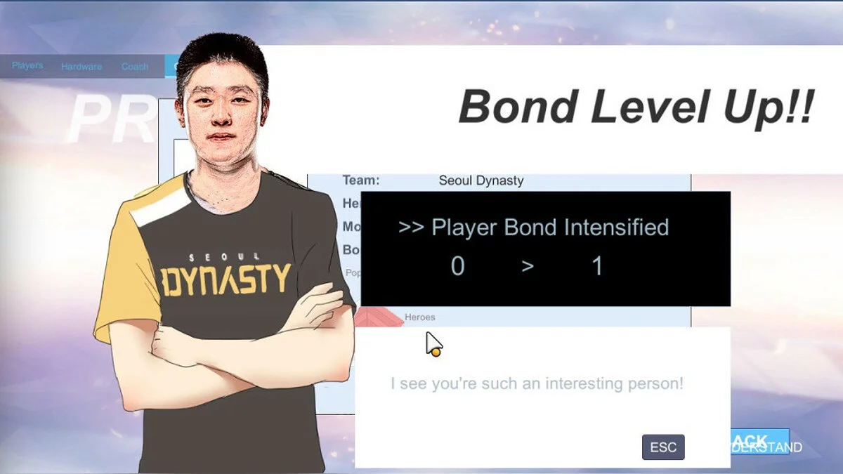 Чтобы улучшить показатели команды, игроки должны будут тренировать киберспортсменов, менять состав, давать указания на следующий матч, а также создавать свою стратегии для каждой игры. Участники команды должны иметь хорошее настроение перед матчем, чтобы повысить шанс на победу. Для этого игроков даже придется водить в Диснейленд или другие развлекательные заведения и парки.