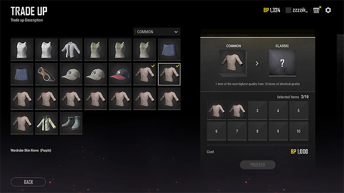 Также в «королевской битве» появилась возможность обмена скинов: одну вещь можно получить взамен на 10 предметов более низкого качества.