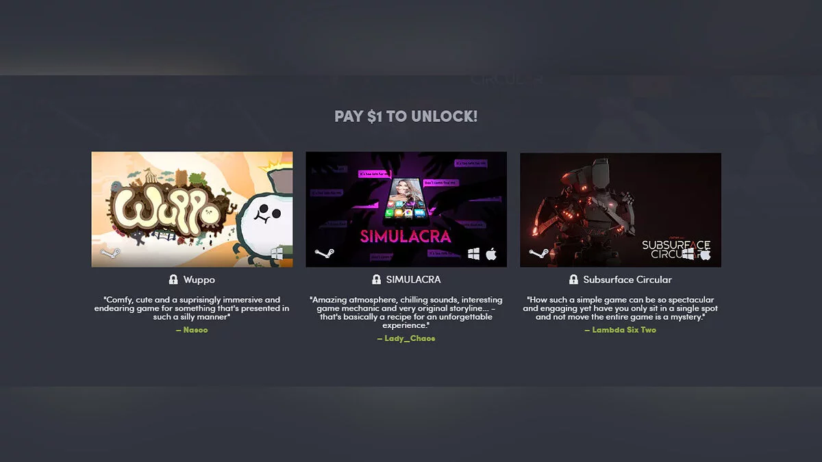 Игрокам отдадут экшен-платформер Wuppo, детективную головоломку SIMULACRA и приключенческую Subsurface Circular.