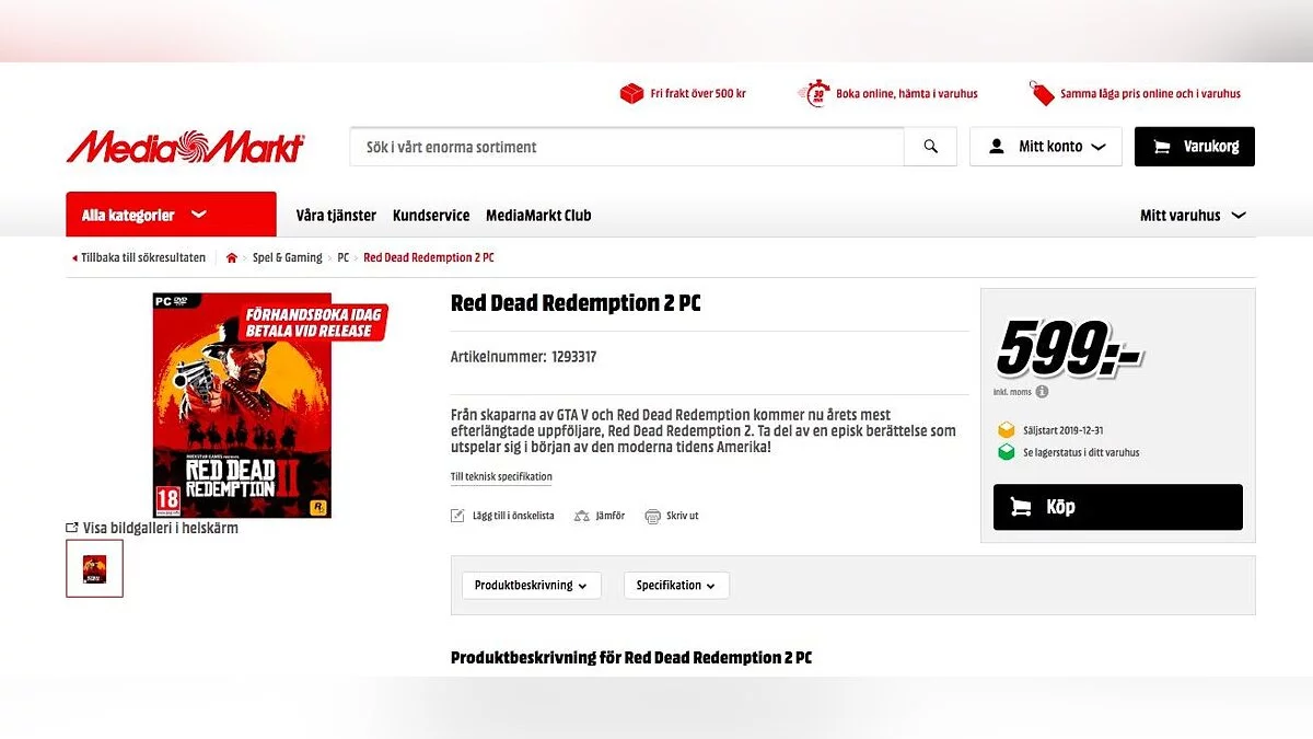 До выхода Red Dead Redemption 2 осталась всего неделя. Хоть Rockstar и анонсировала игру только для консолей, слухи о ПК-версии не утихают до сих пор. Теперь у фанатов есть еще одна причина думать, что разработчики что-то скрывают — шведский филиал магазина электроники MediaMarkt разместил на своем сайте версию для компьютеров.