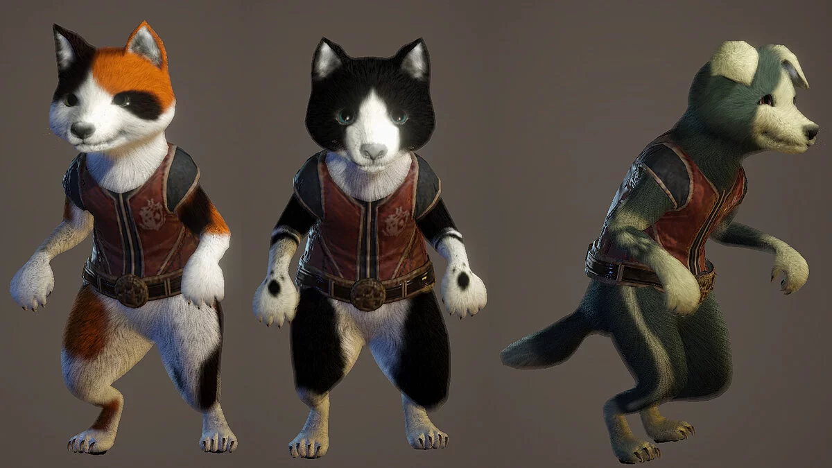 После установки мода в редакторе персонажа появляются новые детали для кастомизации. Таким образом, игроки могут создать пса на любой вкус и цвет. На скриншотах и видео моддер показал несколько созданных им палико-собак.