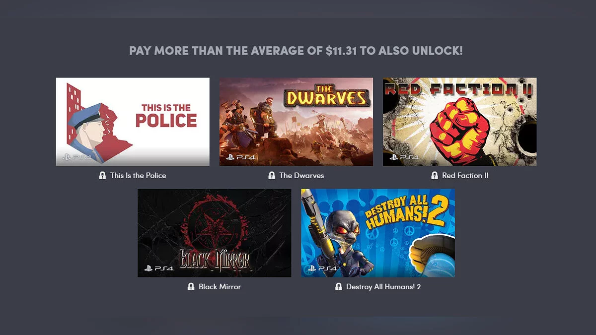Заплатив $11,31, игрок получит еще пять игр: This Is the Police, The Dwarves, Red Faction 2, Black Mirror и Destroy All Humans! 2.