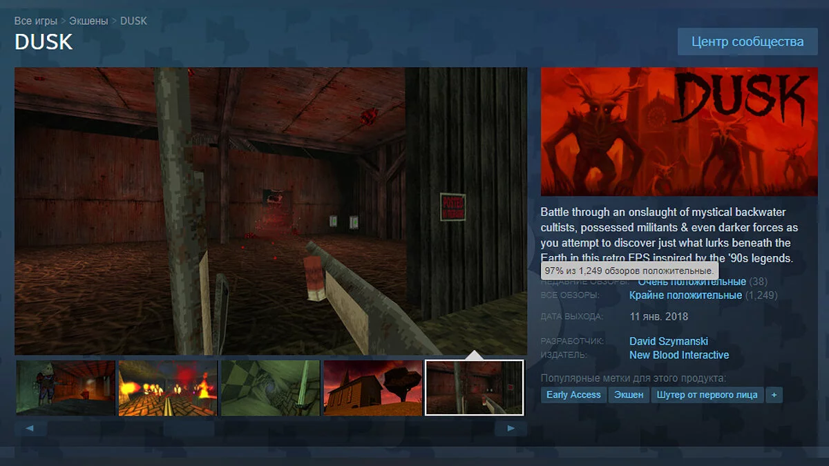Уже сейчас многие геймеры в Steam называют DUSK превосходным олдскульным экшеном с потрясающей музыкой, крутыми боссами и тонной оружия.