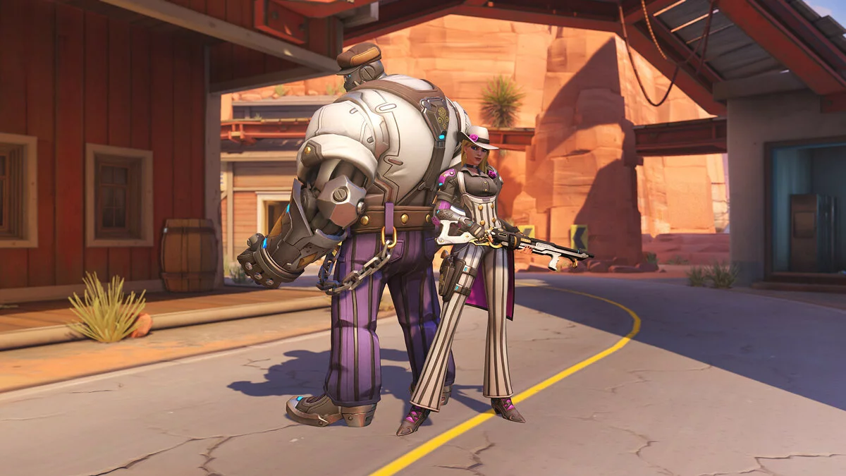 Стоит заметить, что предметы кастомизации меняют облик не только Эш, но и ее напарника-омника Боба, который при активации ульта может подбрасывать врагов в воздух и обстреливать всех из вмонтированных в руки пушек.
