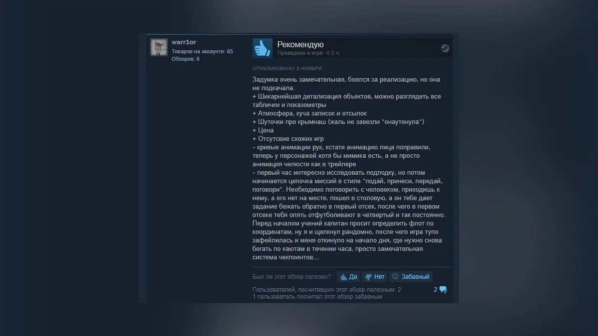 В Steam вышла адвенчура Kursk. Геймеры жалуются на оптимизацию, но хвалят игру за атмосферу и юмор