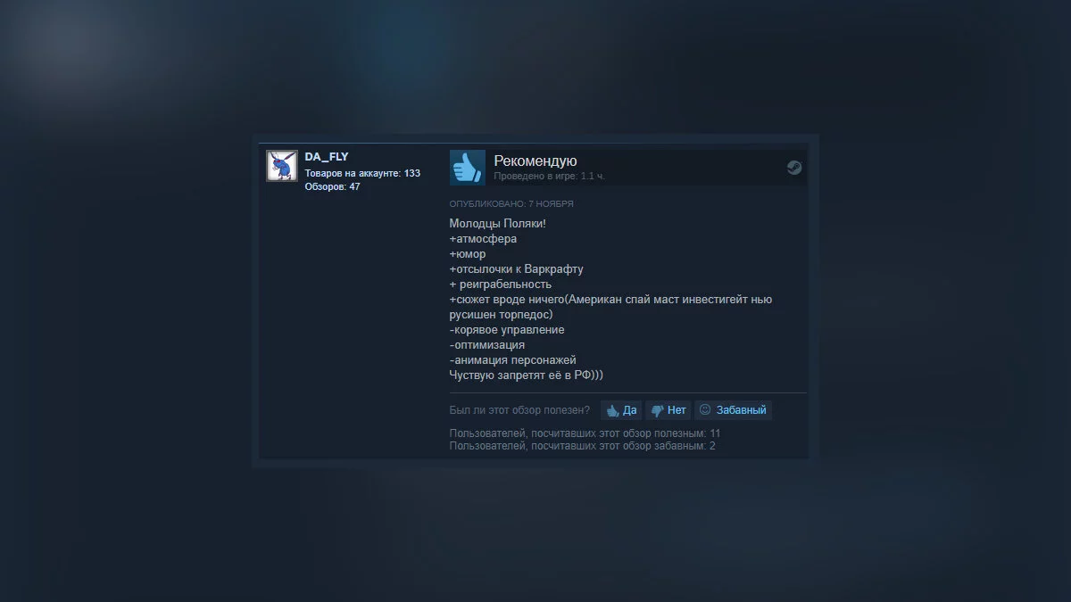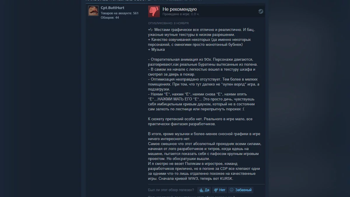 Большинство игроков жалуются на устаревшие анимации и плохую оптимизацию. Из плюсов выделяют атмосферу, юмор и неплохой сюжет.