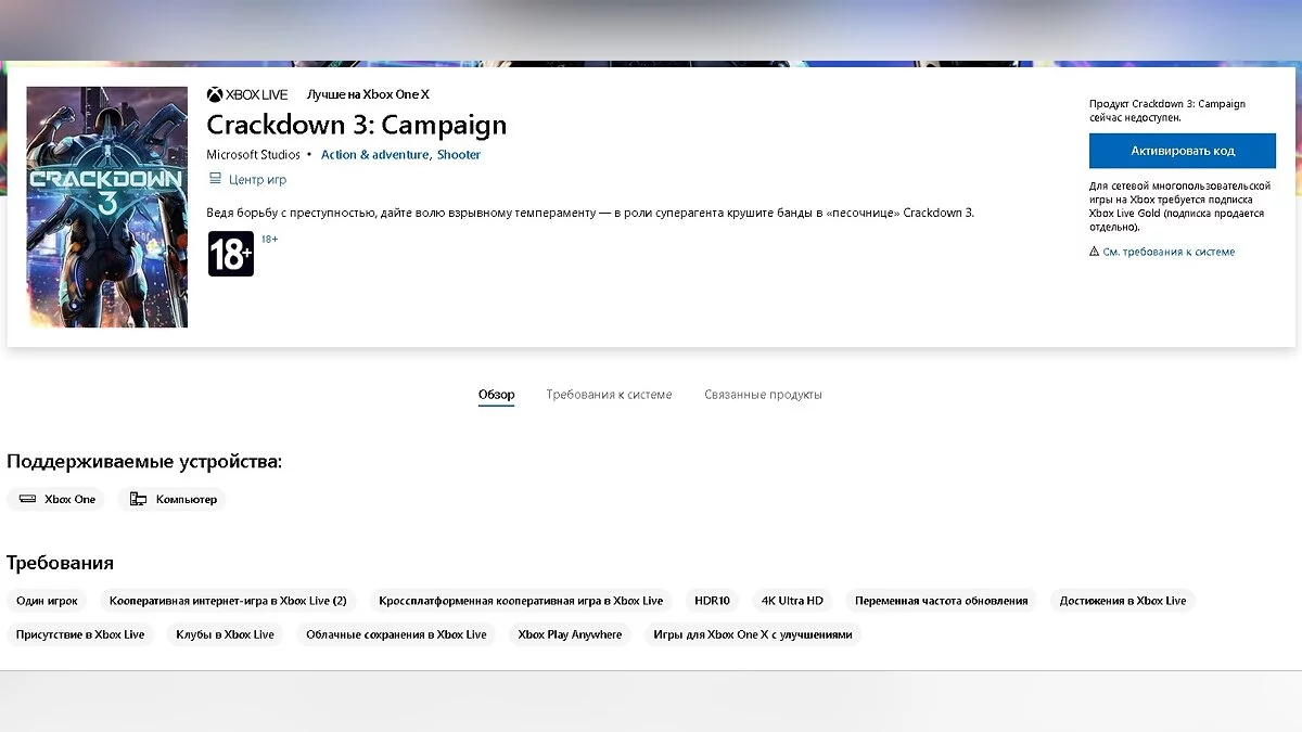 Пользователи форума ResetEra заметили, что у шутера Crackdown 3 в Microsoft Store неожиданно сменилось название. Теперь игра называется Crackdown 3: Campaign, а упоминания мультиплеера из описания исчезли. Это навело геймеров на мысль, что одиночная кампания Crackdown 3 выйдет отдельно от сетевой части, которую, в свою очередь, могут перенести на другую дату в четвертый раз в истории разработки.