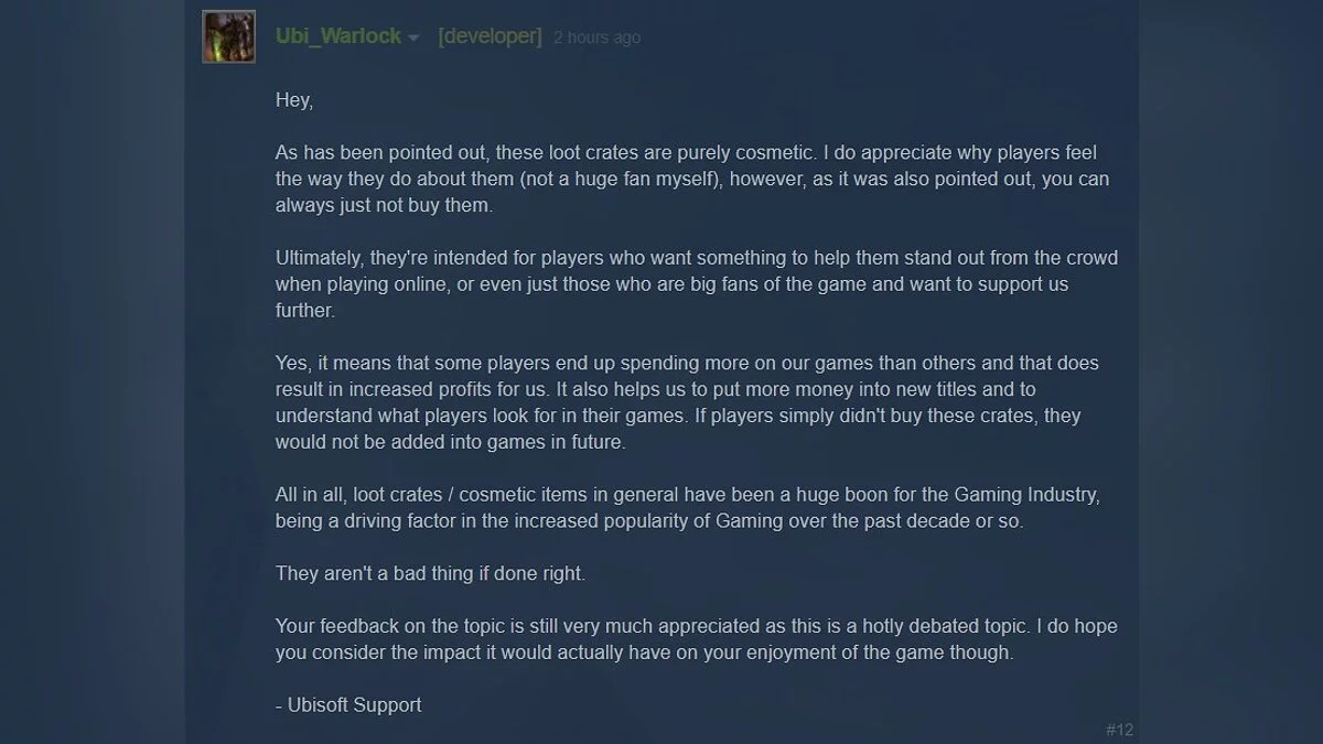 Поддержка Ubisoft: «Если игроки не будут покупать лутбоксы, мы не будем их добавлять в игры»