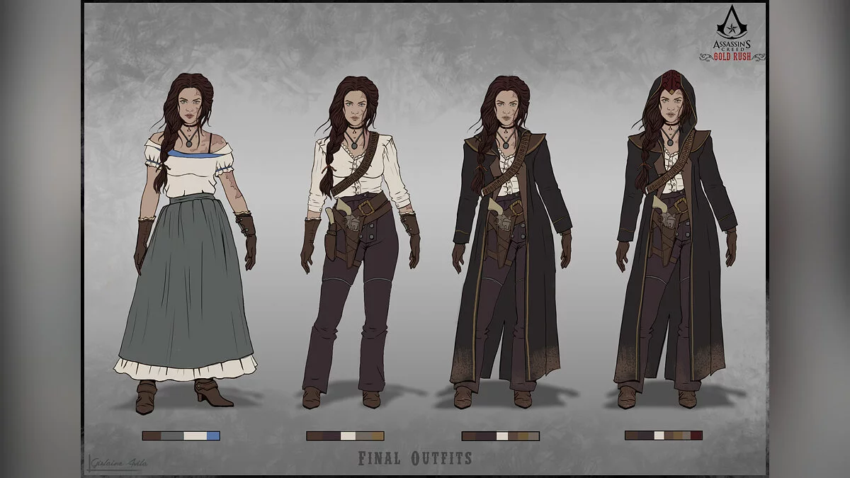 Независимая бразильская художница Гислейн Авила (Gislaine Avila) опубликовала собственные концепт-арты, на которых изображена героиня несуществующей Assassin's Creed: Gold Rush в сеттинге Дикого Запада.