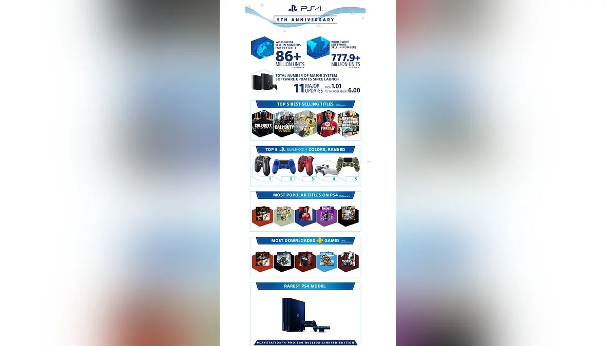 Сегодня PlayStation 4 празднует юбилей — консоли от Sony исполнилось 5 лет. По этому поводу компания поделилась интересными данными о продажах и популярности приставки.
