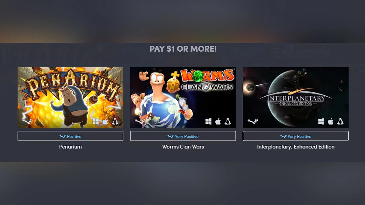 Заплатив $1, покупатель получит Penarium, Worms: Clan Wars и Interplanetary: Enhanced Edition.
