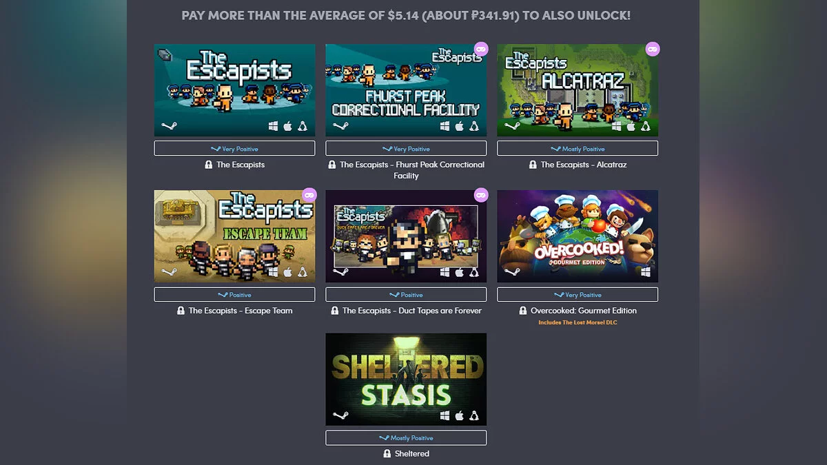 За среднюю сумму, (около $5 на момент написания новости) станут доступны The Escapists во всеми дополнениями, Overcooked: Gourmet Edition и Sheltered.