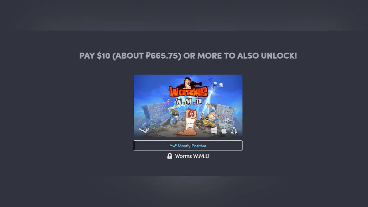 Наконец, за $10 к списку присоединится Worms W.M.D, а также скидка в %10 на первый месяц подписки Humble Monthly и цифровой саундтрек The Escapists.