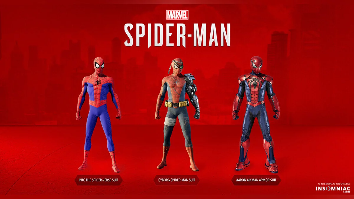 Также разработчики показали три дополнительных костюма. Один из них, кстати, можно увидеть на Питере Паркере в мультфильме «Человек-паук: Через вселенные».