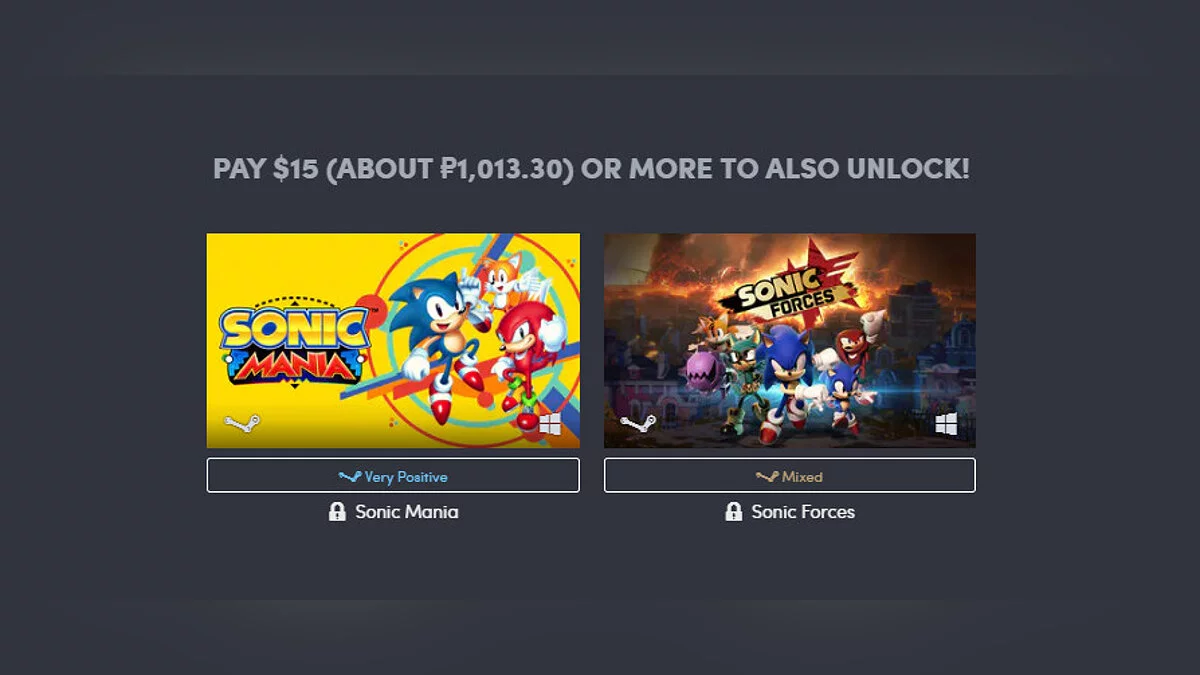 Наконец, $15 разблокируют Sonic Mania и Sonic Forces.