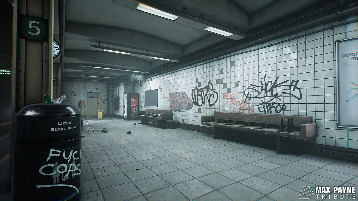Художник по окружению в Bulkhead Interactive Войцех Чалински (Wojciech Chalinski) воссоздал станцию метро «Роско-стрит» из Max Payne. Для этого он использовал движок Unreal Engine 4, на котором локация получилась гораздо современнее.