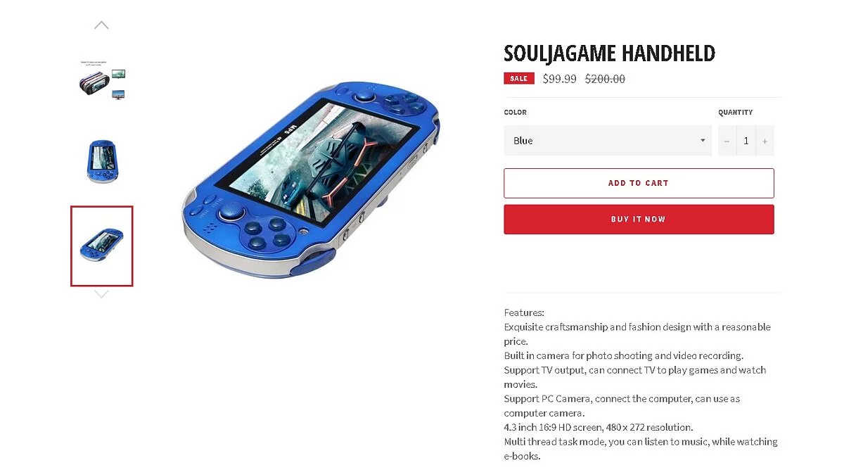 Сейчас SouljaGame Handheld стоит не так дорого, как его прошлые «поделки». За неё Soulja Boy просит всего $100 (около 6 тыс. рублей). Несмотря на её внешний вид, характеристики аппарата указывают на то, что это клон PSP.