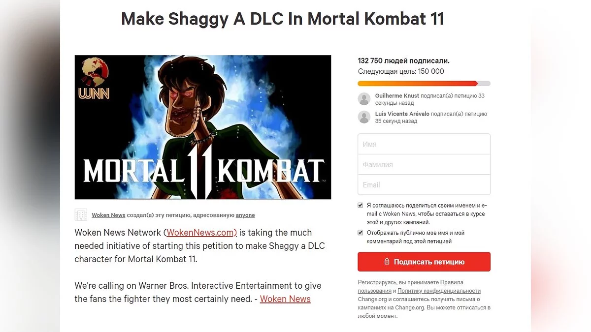 Если вчера под петицией подписалось 40 тыс. человек, то сегодня (на момент написания новости) количество желающих увидеть Шегги в Mortal Kombat 11 выросло до 132 тыс.