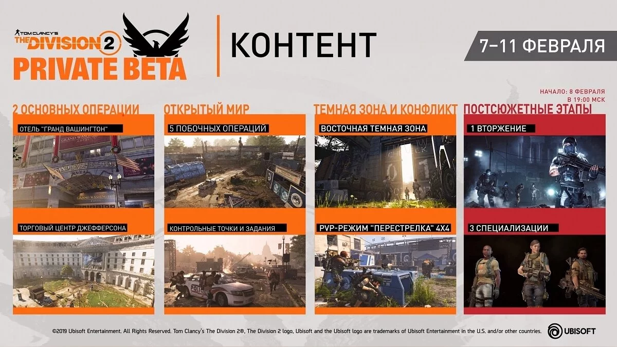 В закрытой бете вас ждут сюжетные задания, второстепенные миссии, PvP (4 на 4) и восточная «Темная зона».
