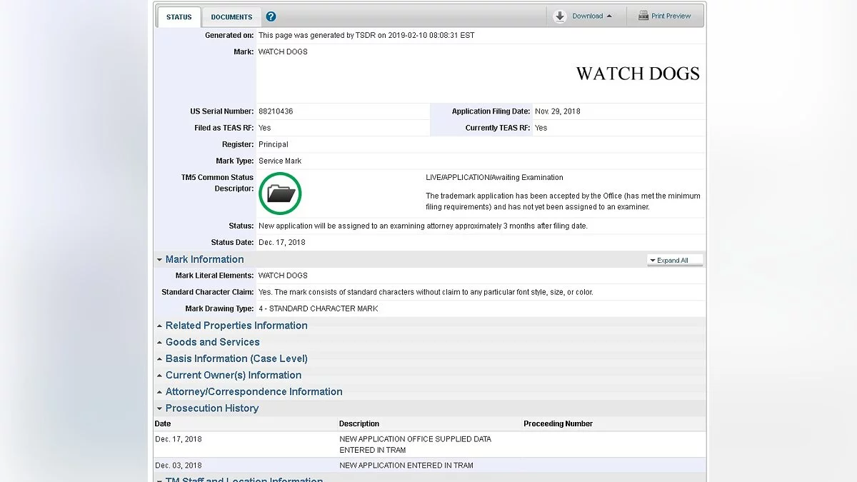 Ютубер под ником SkullziTV, который нашел эту торговую марку, уверен, что Watch Dogs 3 выйдет на PS5 и новой Xbox. По его словам, марка не имеет никакого отношения к предыдущим товарным знакам Watch Dogs, которые Ubisoft регистрировала ранее. На этот факт явно указывает информация на официальном сайте Ведомства по патентам и товарным знакам США (USPTO).