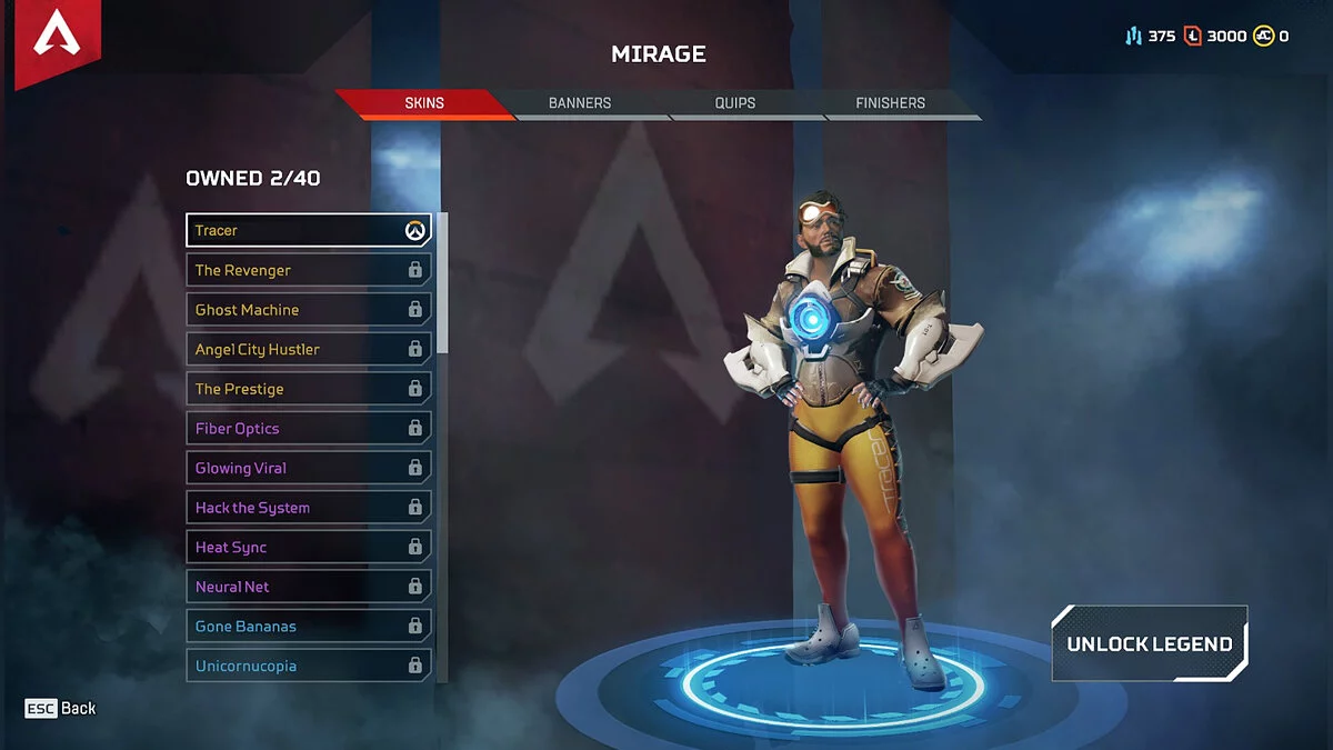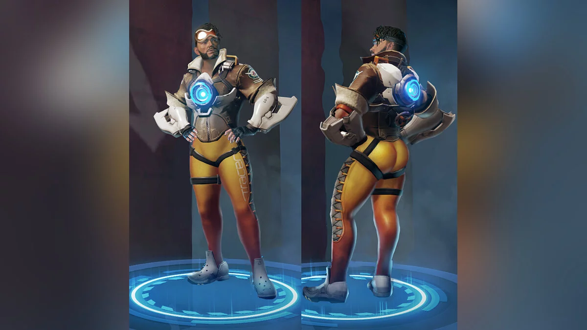 Скин изображает Миража в образе милой Трейсер из Overwatch. Стоит обратить внимание на ноги героя — они получились чересчур накачанными.