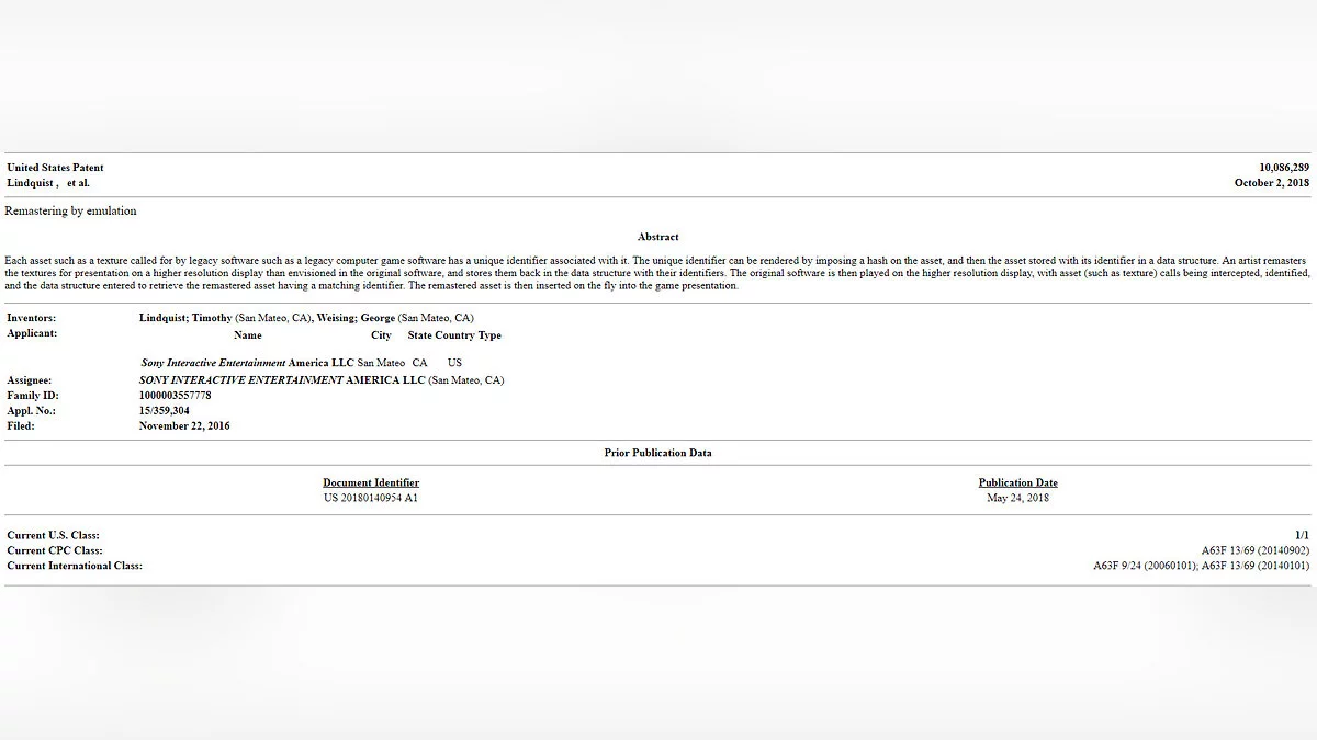 Первый патент, в котором была описана функция обратной совместимости, был опубликован еще в октябре 2018 года, он назывался «Ремастеринг с помощью эмуляции». Это сложная система, которая позволит играть в очень старые игры на PS5 с обновлёнными текстурами (по крайней мере, так написано в патенте).