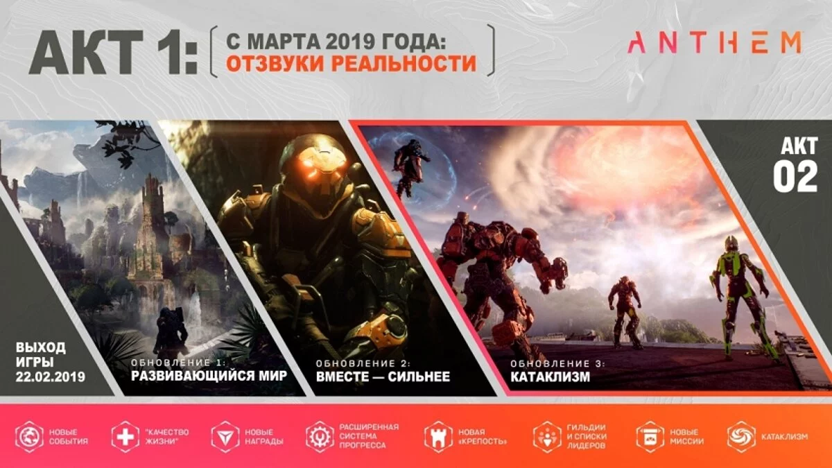 Важно помнить, что все эти обновления и ивенты являются частью первого акта Anthem. Все акты, скорее всего, будут занимать три календарных месяца, в каждом из которых будут происходить определенные события. Разработчики уже показали, что в Anthem точно будет второй и третий акт, события которых остаются в тайне.