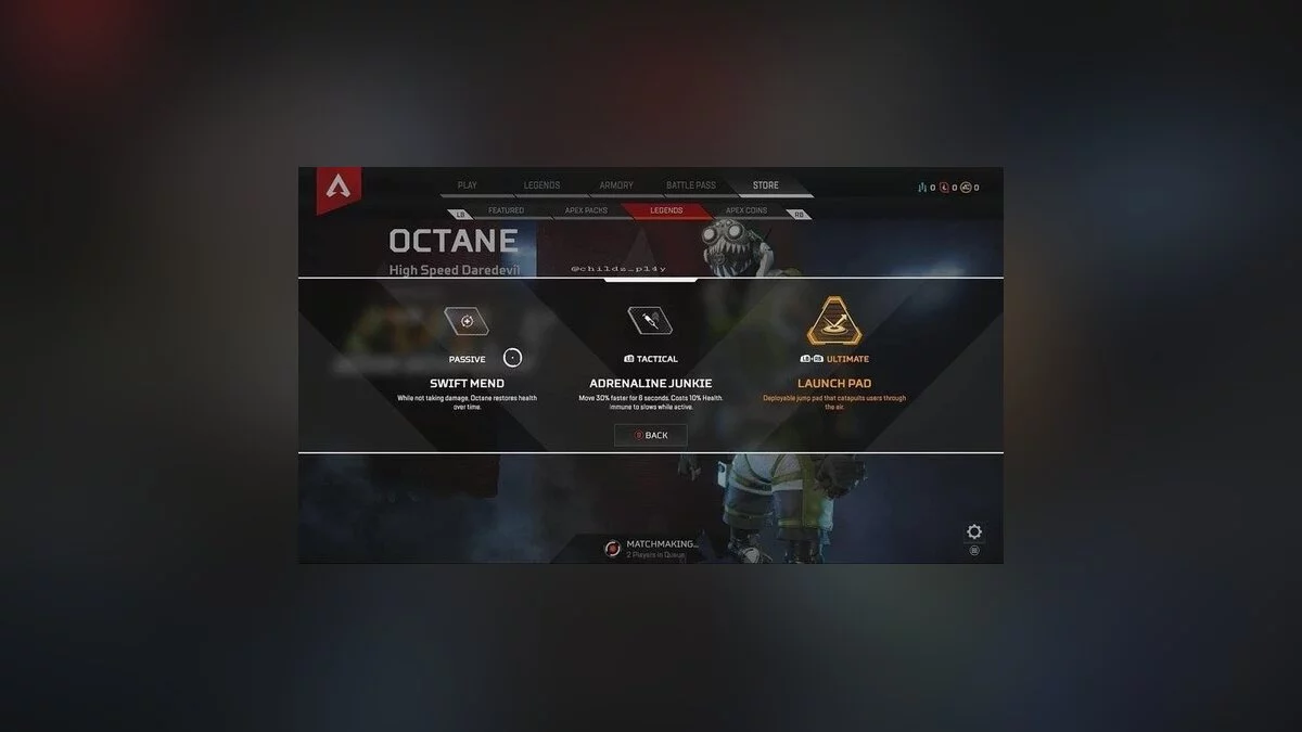 Героем выступает некий Октан (Octane), который, по мнению некоторых геймеров, очень сильно похож на Крысавчика из Overwatch.