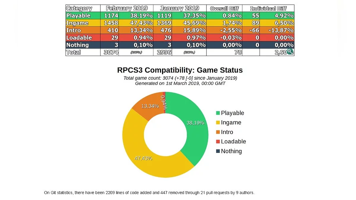 Игры первых двух категорий, по словам разработчиков RPCS3, теперь занимают более 85% всей существующей библиотеки, что является огромным прорывом. За пять месяцев создателям эмулятора удалось сделать почти 200 игр проходимыми от начала и до конца, но до идеальной работы почти всей библиотеки еще далеко.