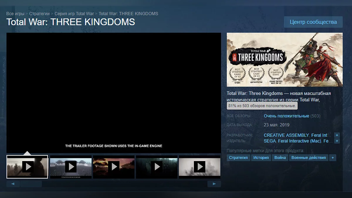 Игровые новости Новости В Steam вышла стратегия Total War: Three Kingdoms, которая в первые часы получила свыше 80% положительных отзывов