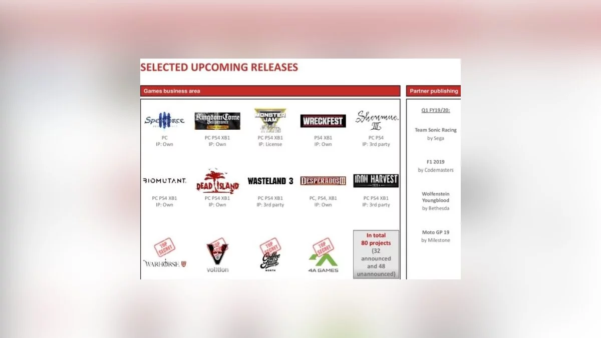 THQ Nordic сообщила, что сейчас приобретенные ею (и сотрудничающие) студии занимаются разработкой 80 игр. Большинство из них пока еще даже не анонсированы.
