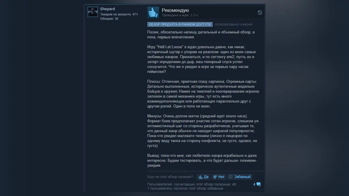 Сейчас у Hell Let Loose в основном смешанные отзывы (рейтинг в Steam — 66%).