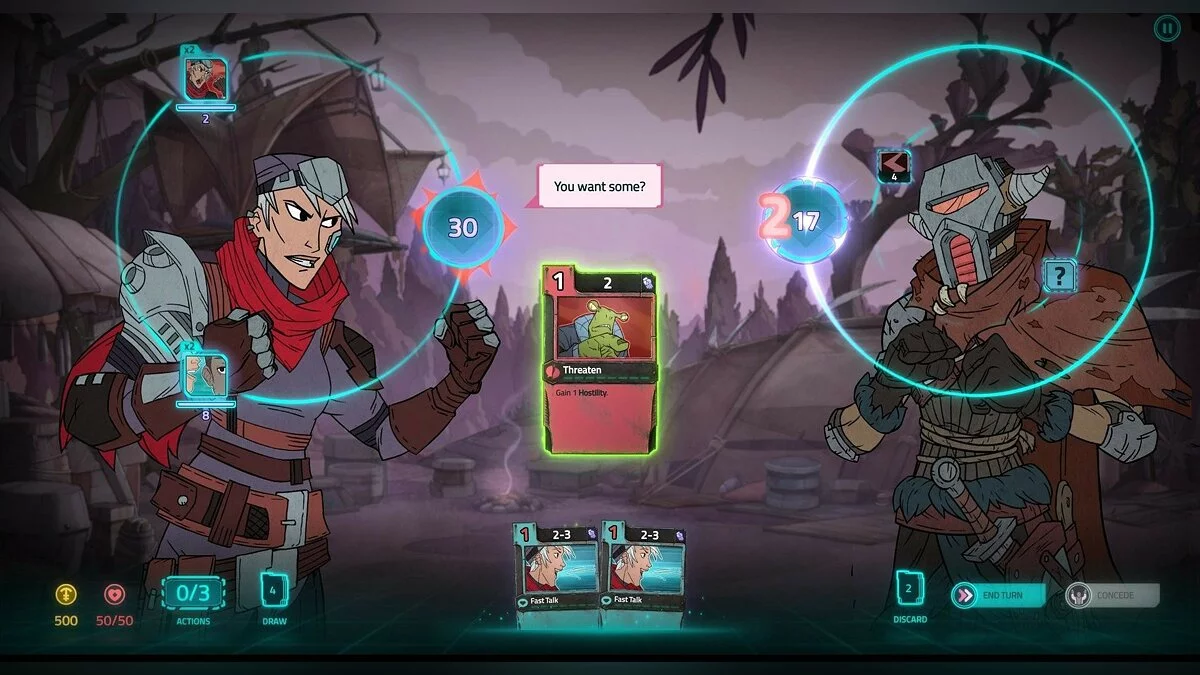 Боевка строится на карточной механике с пошаговыми действиями. Заявлены RPG-элементы.