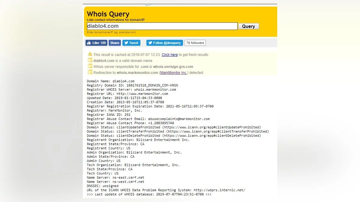 Этот домен был создан еще в январе 2003 года. Тогда он «ходил» по фанатам, которые перенаправляли его на свои собственные форумы и официальные сайты Blizzard. Однако спустя 16 лет он наконец-то попал к создателям серии. Значит ли это, что скоро компания анонсирует Diablo 4? Такая вероятность есть.