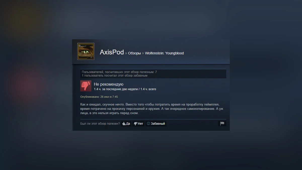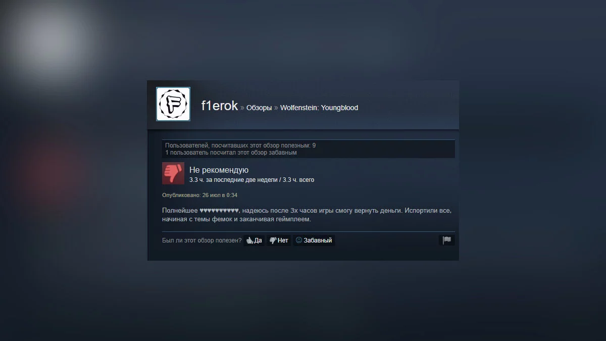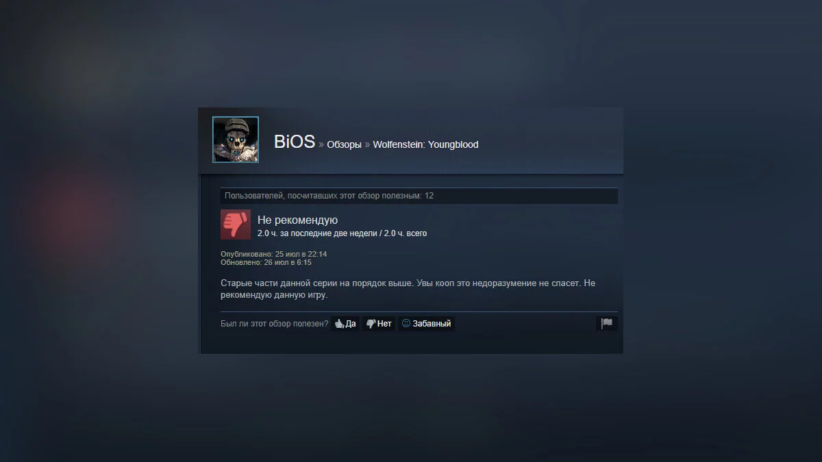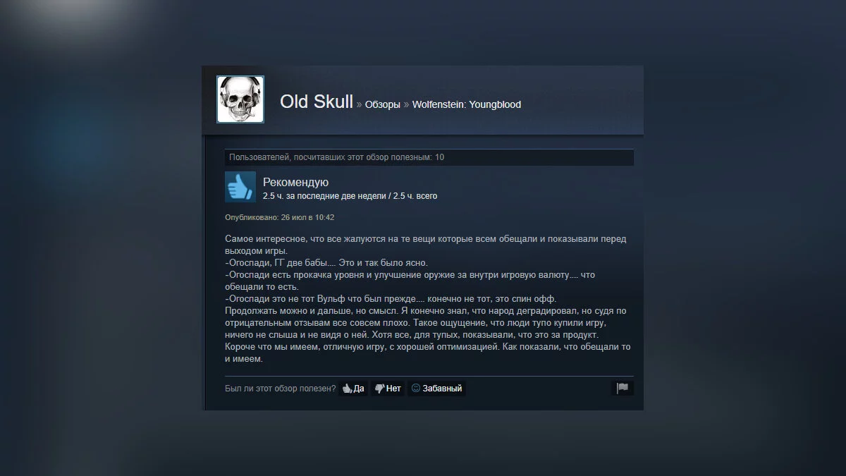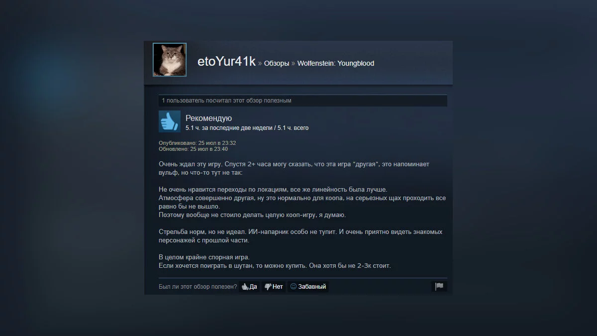 Вчера в Steam вышел шутер от первого лица Wolfenstein: Youngblood, который спустя несколько часов после релиза получил смешанные отзывы от игроков.