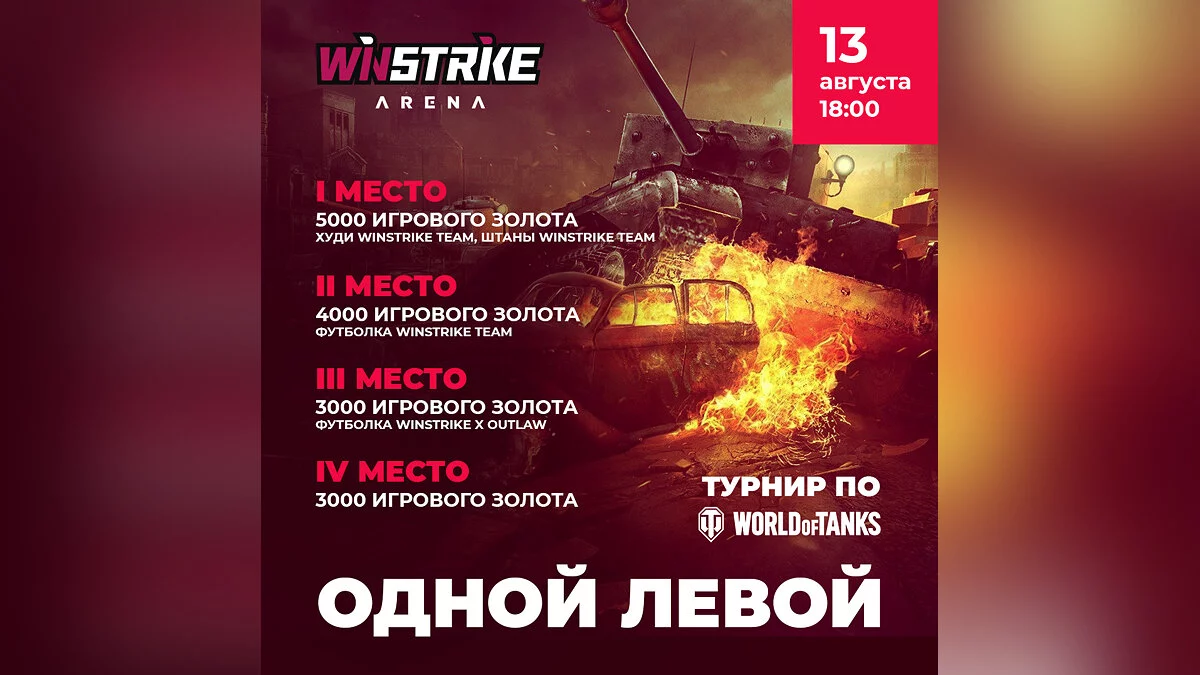 Игроки смогут продемонстрировать свои навыки игры в World of Tanks левой рукой, а кто-то наглядно покажет, каково быть левшой-геймером. Победители получат внутриигровую валюту от Wargaming и мерч от Winstrike.