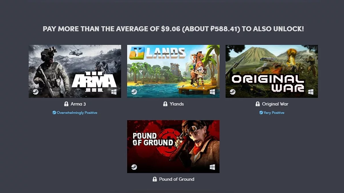За $9,06 (примерно 588 рублей) игрокам докинут Arma 3, Ylands, Original War и Pound of Ground.