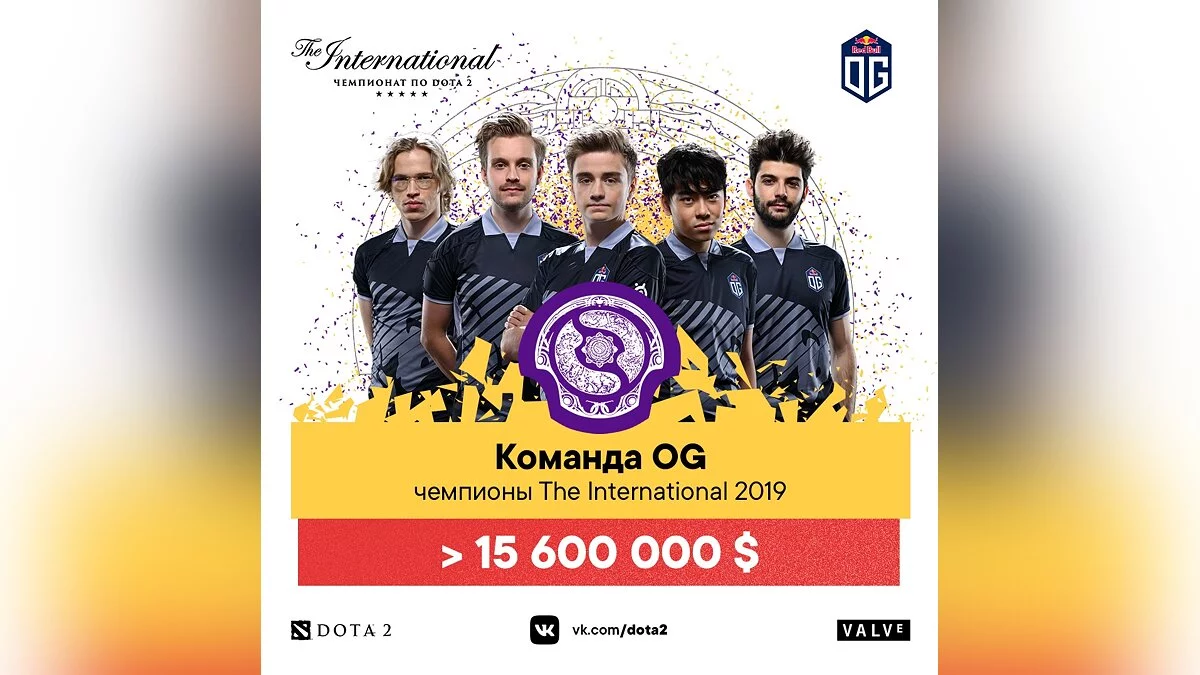 Команда OG победила на The International 2019 по Dota 2, тем самым став первым коллективом в истории турнира, который занял первое место два раза подряд.