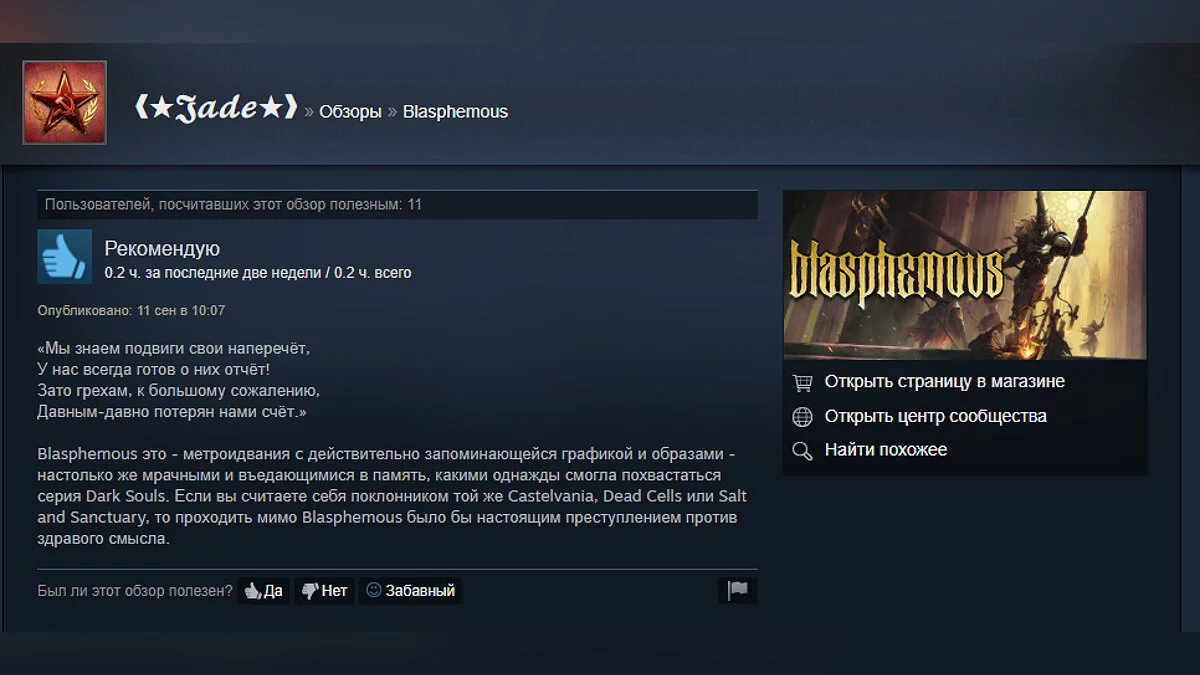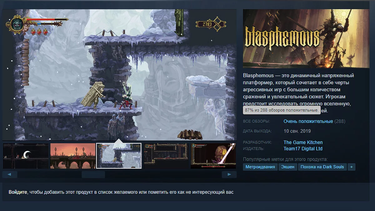 На PC, PlayStation 4, Xbox One и Nintendo Switch вышел готический метроидвания-экшен под названием Blasphemous, который в Steam многие сравнивают с Dark Souls (по части мрачной атмосферы).