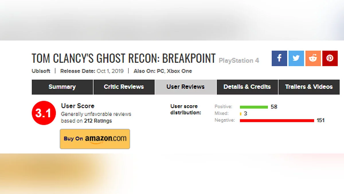На момент написания новости у Ghost Recon Breakpoint 3,1 балл. Большинство критики направлено в сторону внутриигрых микротранзакций.