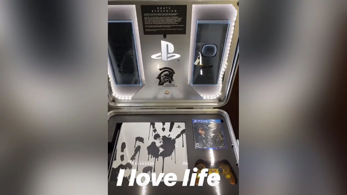 Правильный код — 2015. Внутри чемоданов находились PS4 Pro в расцветке Death Stranding, геймпад DualShock 4, диск с игрой, беспроводные наушники Sony, ожерелье Сэма и послание от разработчиков.